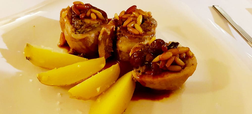 Secreto relleno de foie y setas del restaurante Huerto Nun comer en Aracena